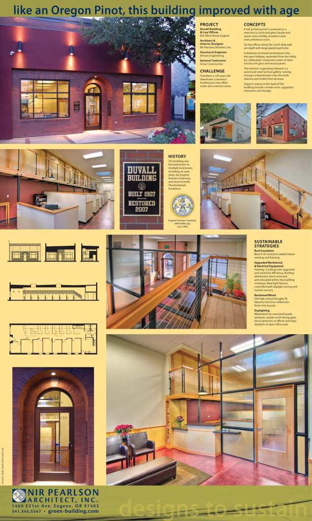 In this competition which takes place annually during the Eugene Celebration weekend, local architects and landscape architects present their featured projects in various categories, and the citizens of Eugene cast their vote for the best project in each category.