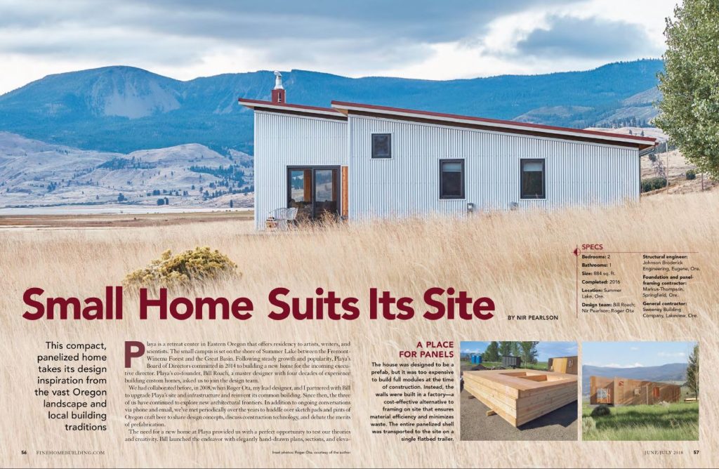 Playa is a retreat center in Eastern Oregon that offers residency to artists, writers, and scientists. The small campus is set on the shore of Summer Lake between the Fremont-Winema Forest and the Great Basin. Following steady growth and popularity, Playa’s Board of Directors committed in 2014 to building a new small home for the incoming executive director. Playa’s co-founder, Bill Roach, a master designer with four decades of experience building custom homes, asked us to join the design team.