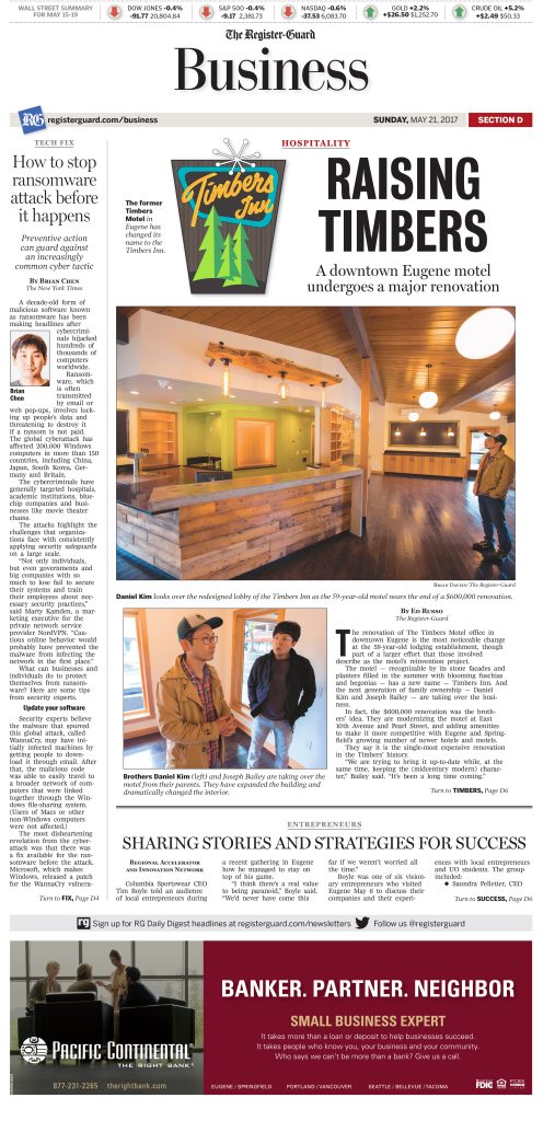 The renovation of The Timbers Motel office in downtown Eugene is the most noticeable change at the 59-year-old lodging establishment, though part of a larger effort that those involved describe as the motel’s reinvention project.