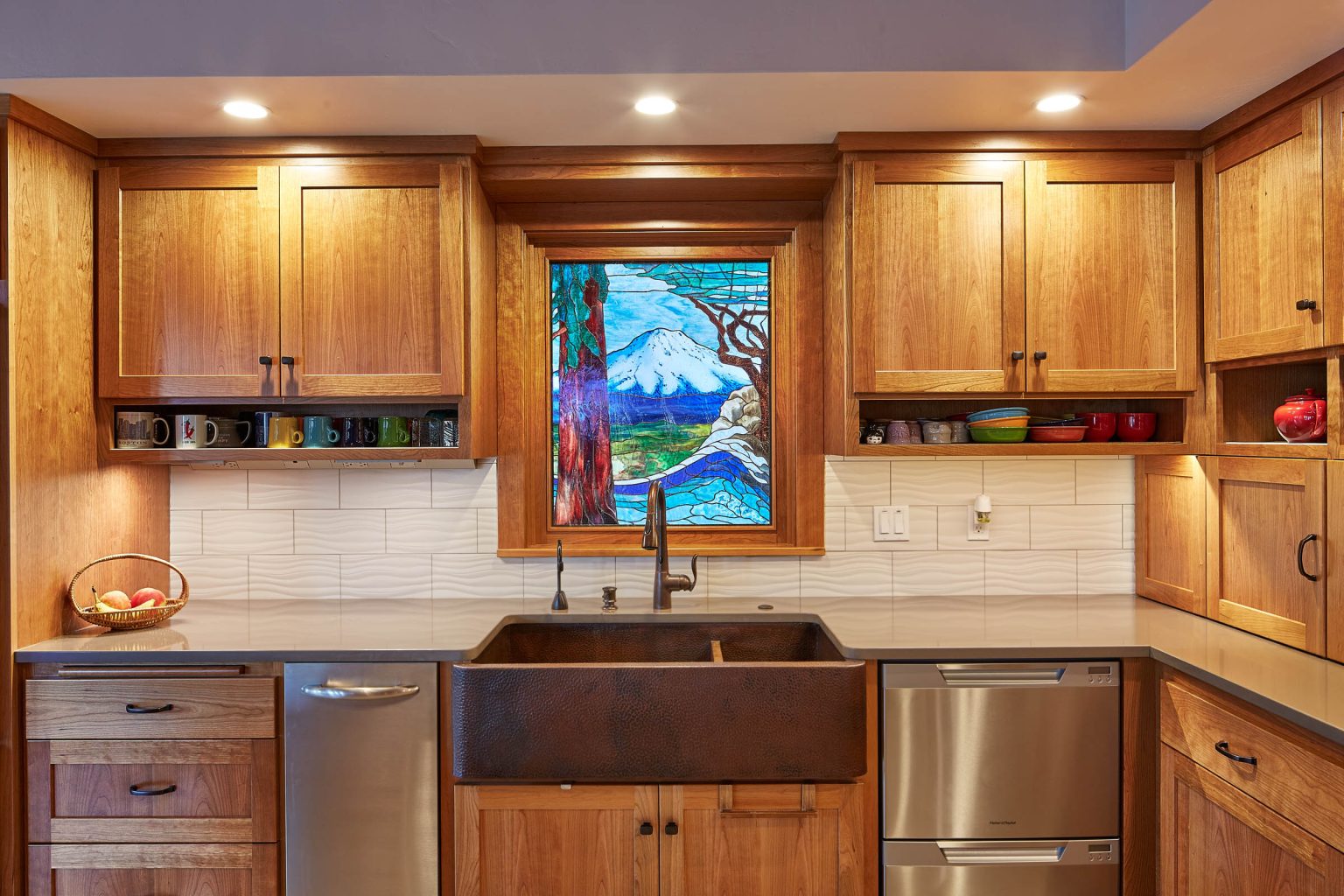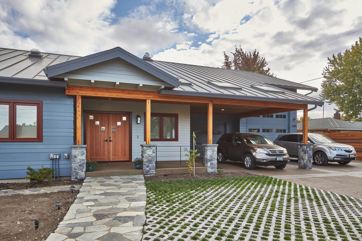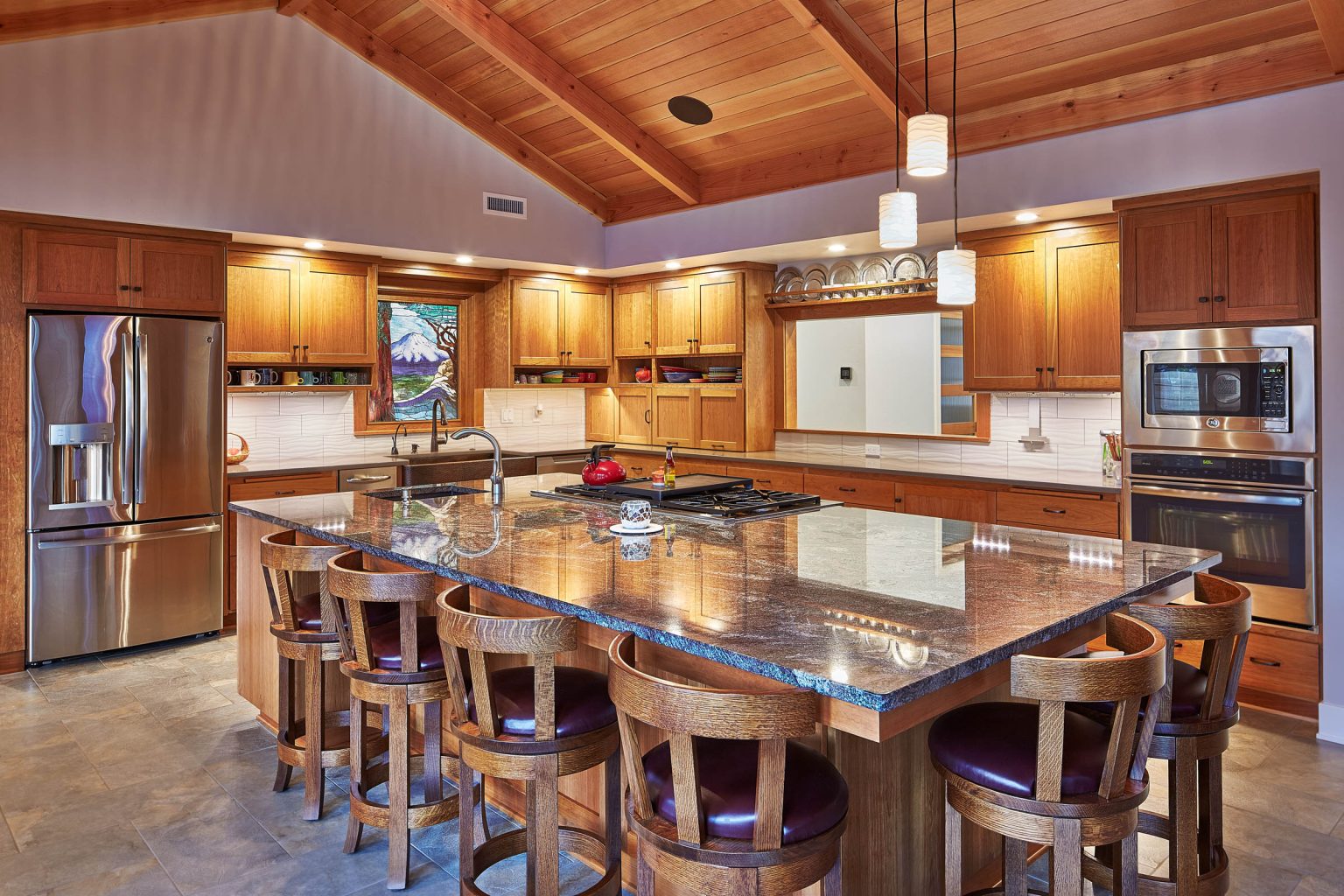 Renovations and additions allow a home to evolve with its owners. This extensive remodel transformed the Cal Young House into a place that balances openness with warmth and seamlessly connects to its setting. The great room serves as the heart of the home, featuring exposed wood and steel structure, custom built-ins, and expansive views of the yard and garden. A light-filled kitchen with finely crafted wood casework extends naturally onto the patio, encouraging outdoor living and dining. The refreshed exterior completes the transformation, giving the home a renewed presence that feels as inviting outside as it does within.