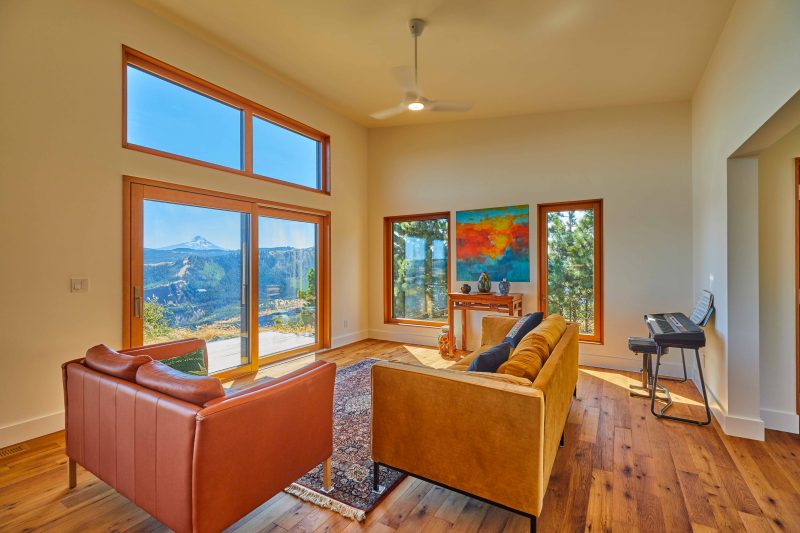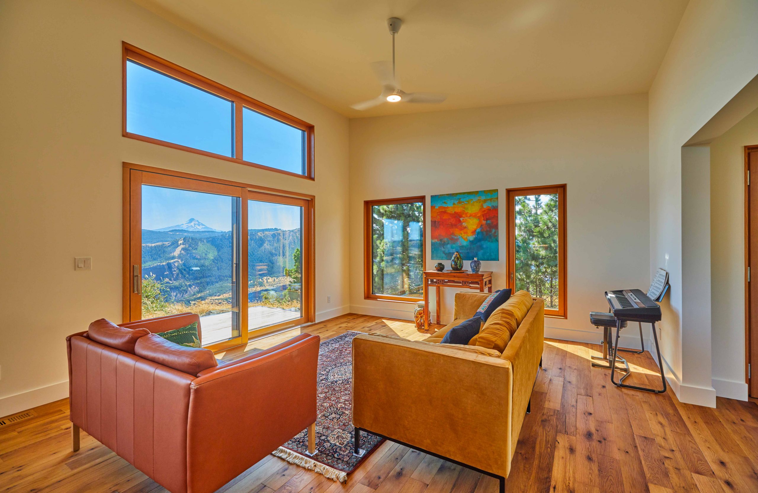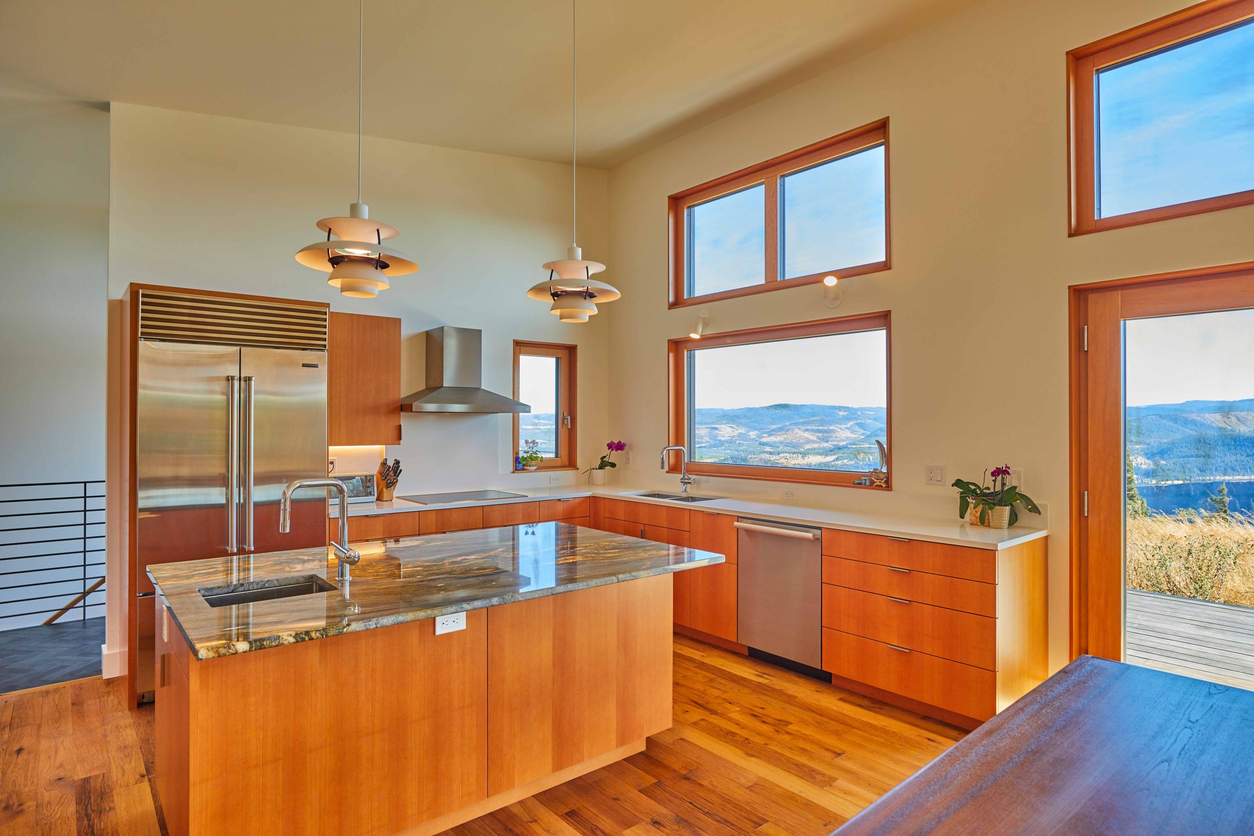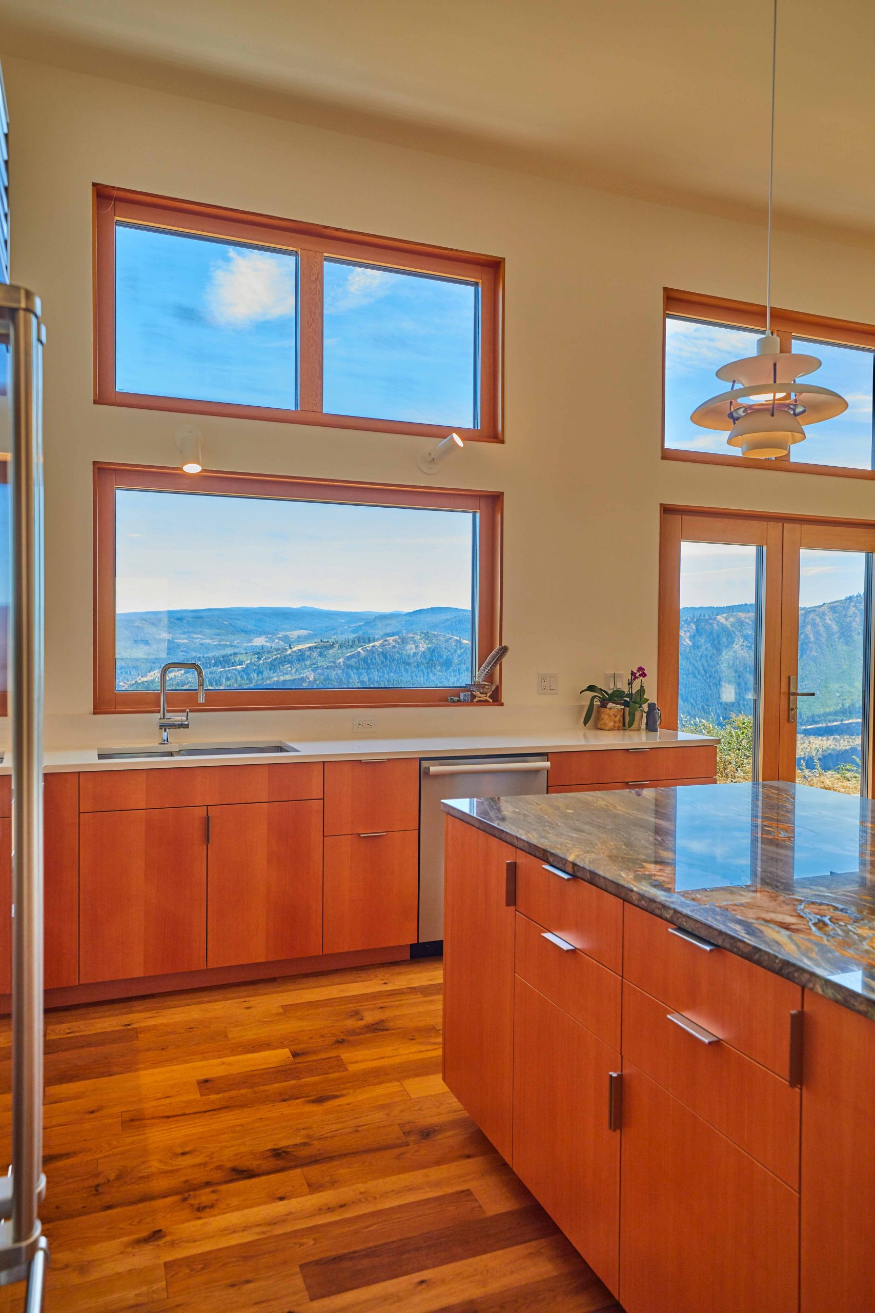 Situated above the treeline overlooking the beautiful Columbia Gorge, this pass house designed, high performance residence takes advantage of its steep site to provide expansive living spaces. South facing windows draw in light and air, while carefully crafted overhangs protect from even the toughest summer sun. Well detailed built-in cabinetry reinforces timber elements throughout the house, providing functional rationality to walls.