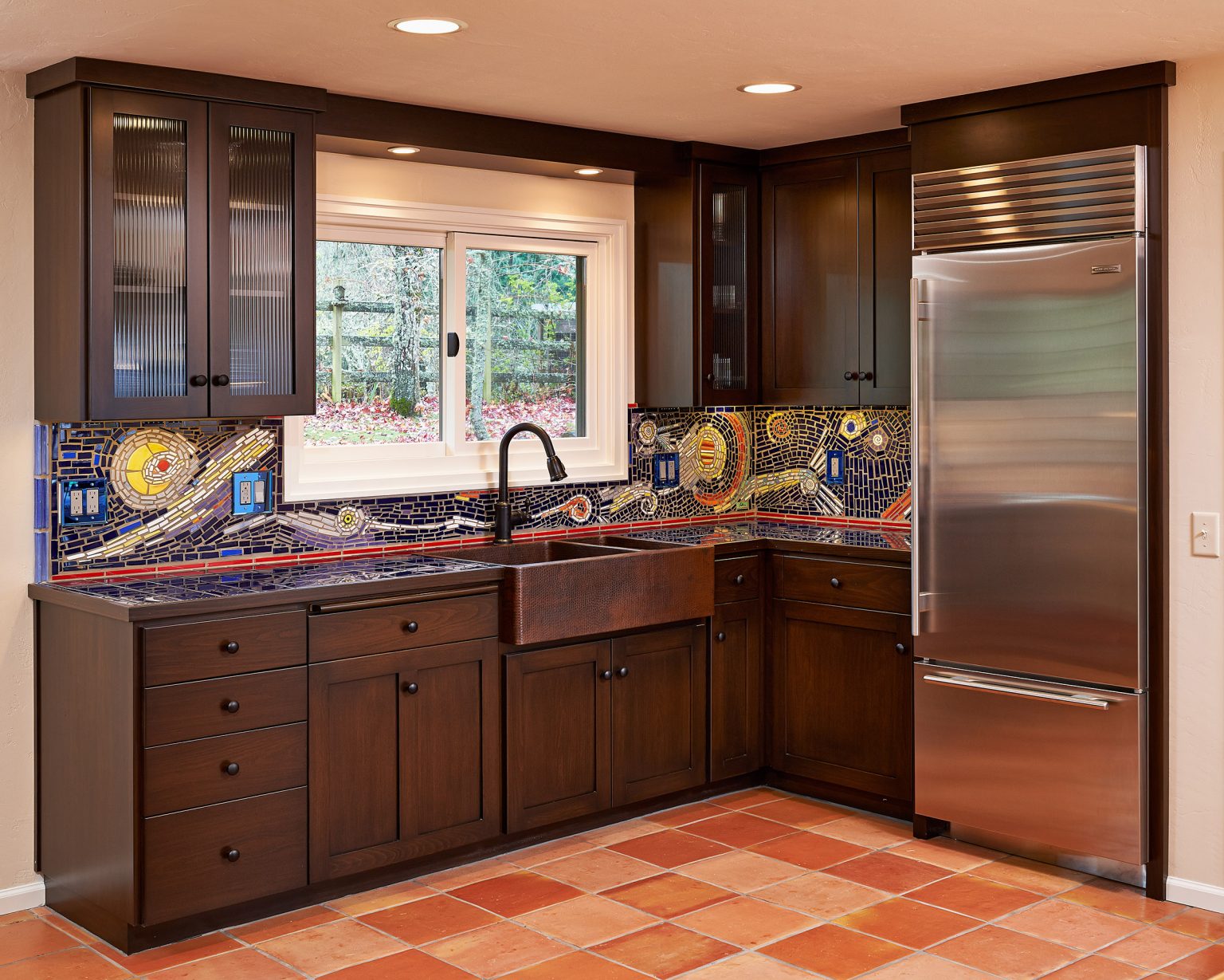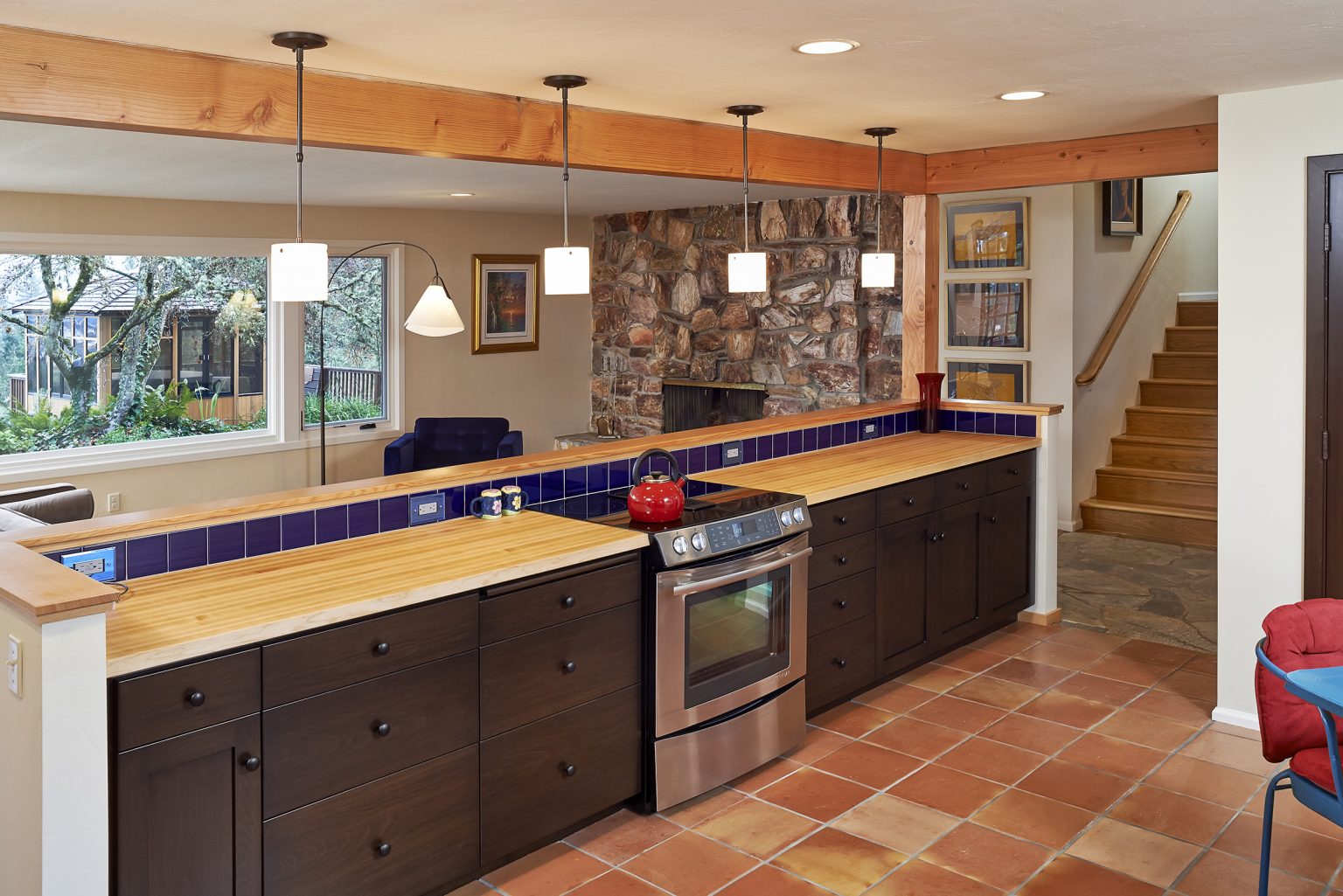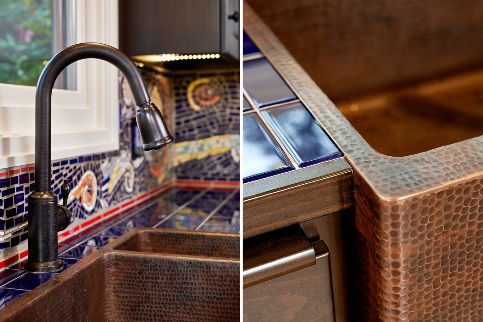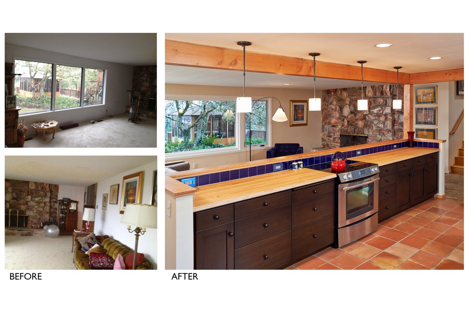 What was once a cramped kitchen and dining room is now an open, light-filled space that embraces sweeping city views. The updated eat-in kitchen flows seamlessly for cooking, gathering, and to the outdoors. Personal touches, including mosaics inspired by the client’s own passion, make the space both distinctive and deeply personal—an elegant blend of function, beauty, and individuality.