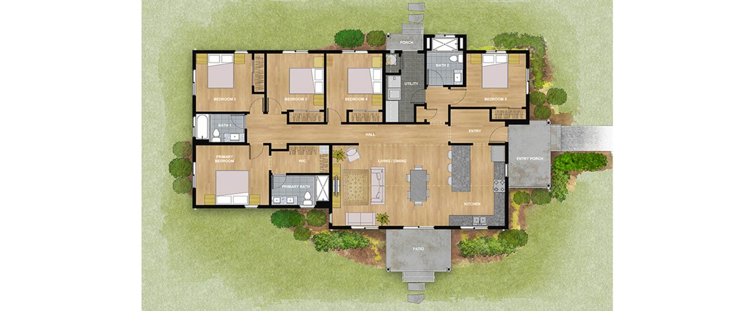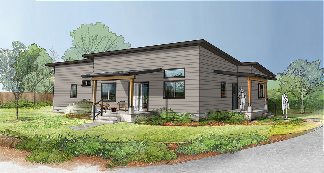 Aligned Architecture designed a library of fully engineered permit-ready home prototypes ranging from two to five bedrooms. The collection includes 11 core prototype designs, each with multiple variations in style, orientation, and configuration to accommodate a wide range of sites and community contexts. Architectural styles include Craftsman, Farmhouse, and Contemporary, offering flexibility while maintaining high standards of livability, durability, and design. All homes meet Energy Star, National Green Building, Fortified Homes, HUD, stringent stormwater management (including a focus on fishery safe materials), WUI (Wildland Urban Interface) Fire Hardening and OHCS Standards quality.