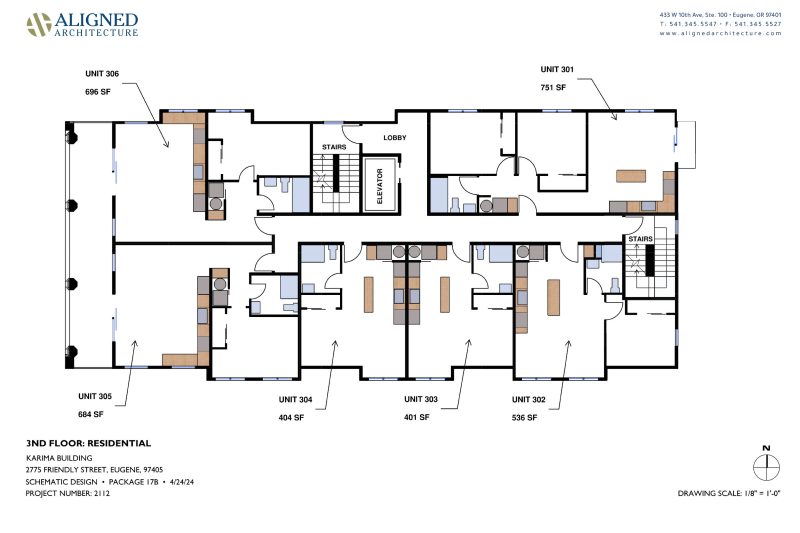 The Karima Building will bring together deep healing, community, and inspired living in the heart of Eugene’s Friendly Neighborhood. The ground floor will host the Karima Healing Center, a state-of-the-art wellness spa offering massage, acupuncture, water therapy, saunas, and more. Above, a mix of six apartments and a yoga studio with expansive arched loggias will provide unique housing and spaces for restoration.