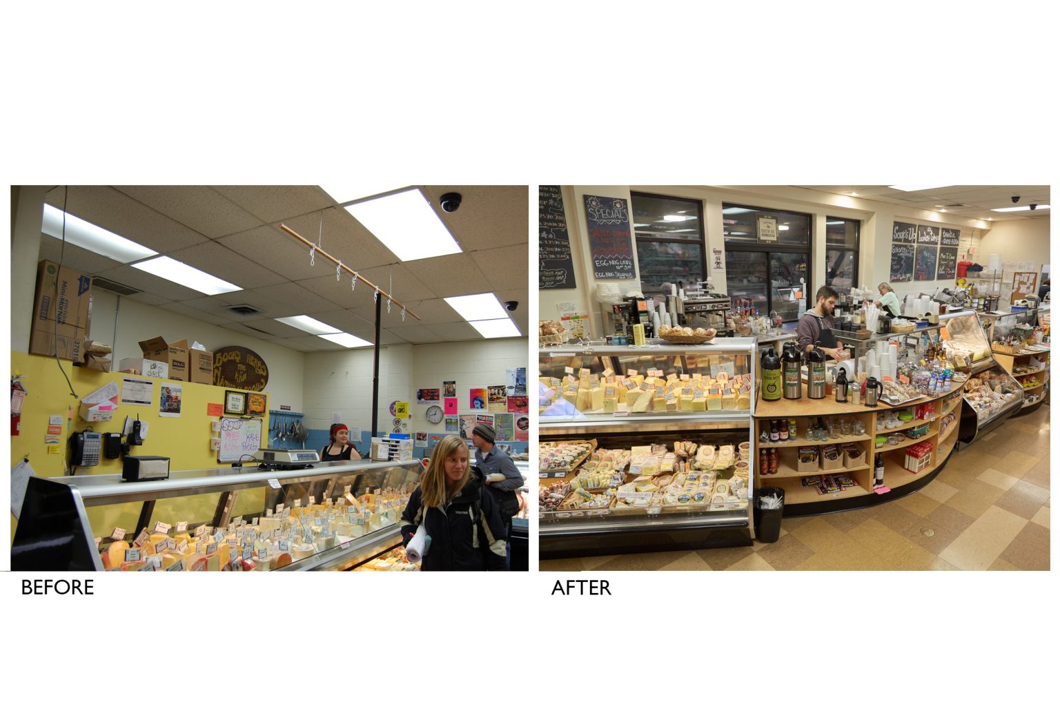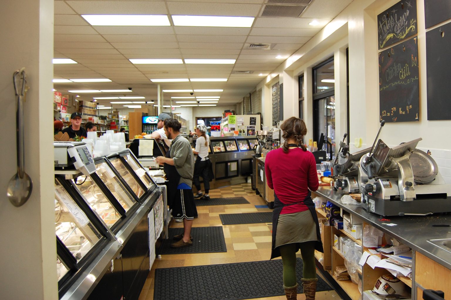 Generous openings cut into the existing masonry walls reinvigorate this tired building by bringing daylight inside, granting views of the merchandise from outside, and revitalizing the street corner. A full commercial kitchen and deli are miraculously inserted into the compact store, where specialty foods are prepared and served. A sheltered outdoor dining patio and a deli walk-up window allow customers to enjoy food and coffee in an outdoor urban setting. These changes re-introduce this familiar downtown business as a unique local urban market and deli, offering quality groceries, health products, and prepared foods.