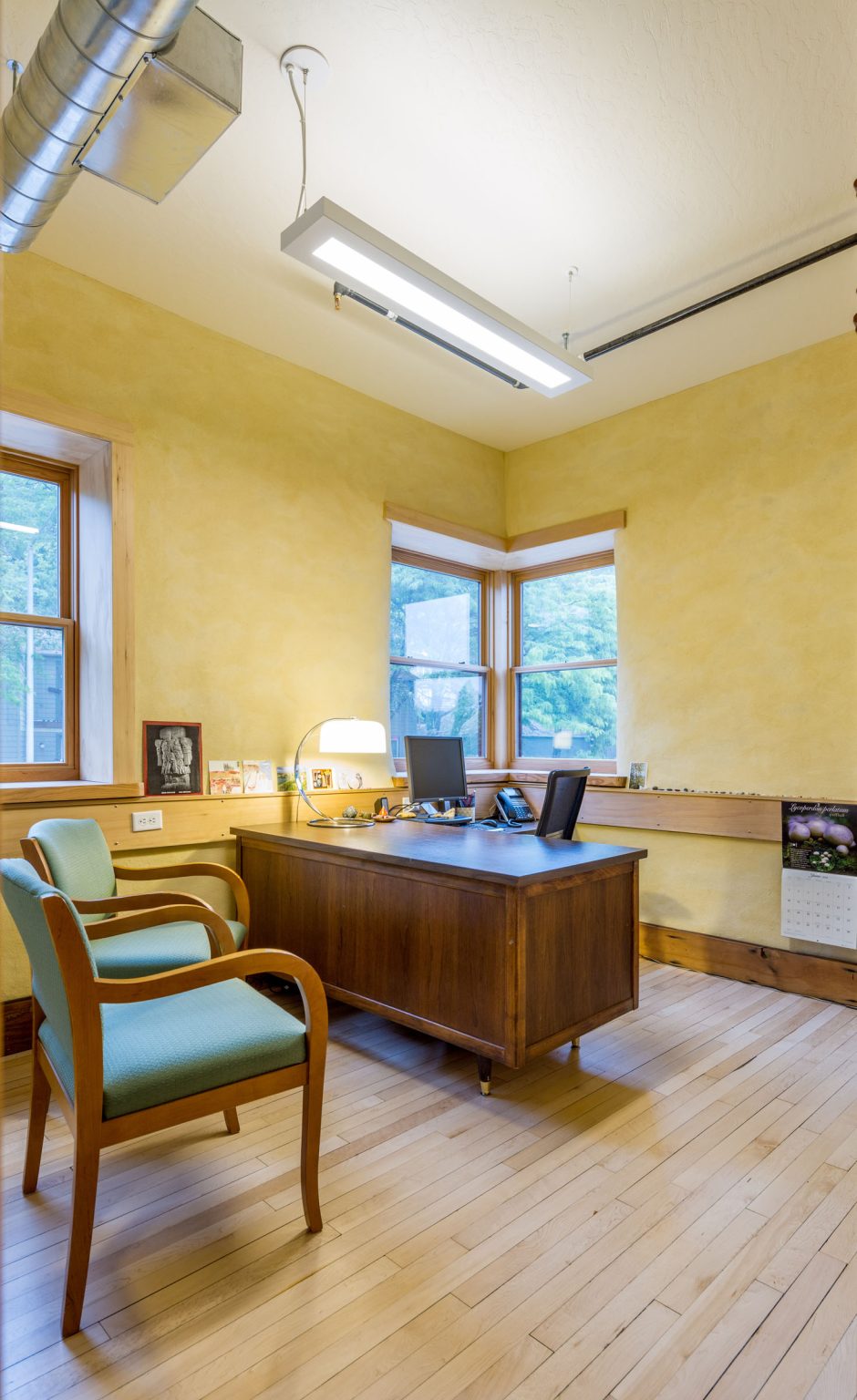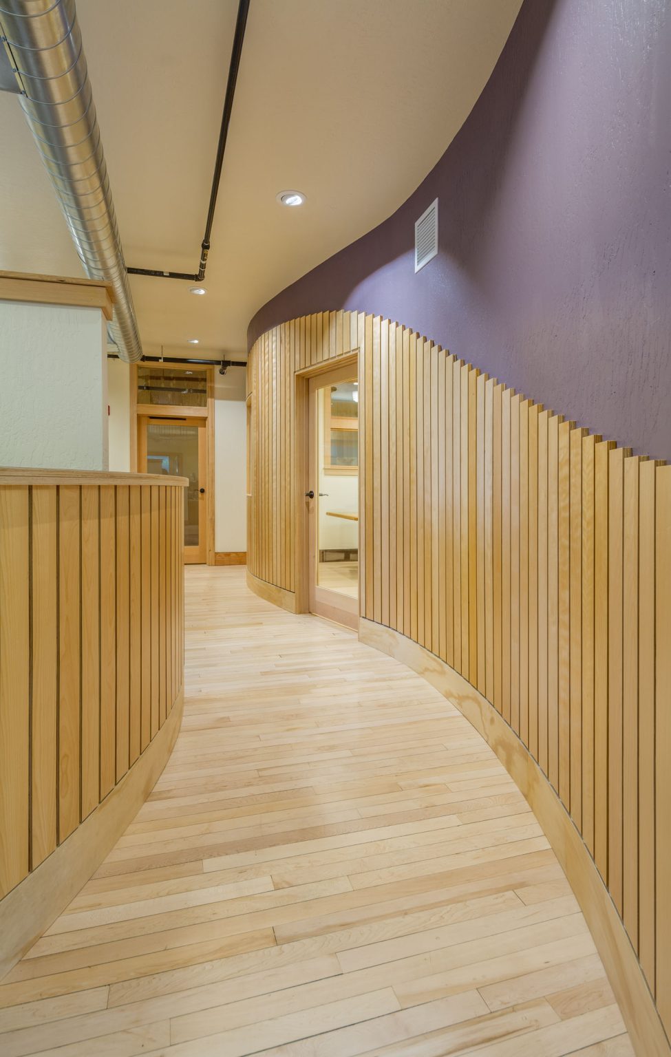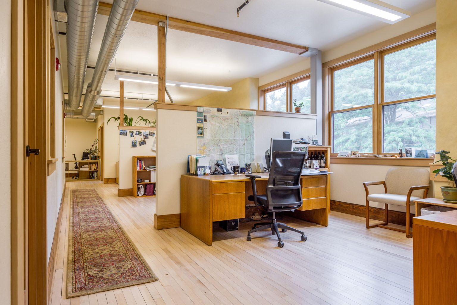 Aligned Architecture designed the new home for the McKenzie River Trust, a nonprofit dedicated to protecting and caring for lands and waters across Western Oregon. Located within the Mahonia Building in Eugene, the tenant-infill project created a welcoming, light-filled space that reflects the organization’s conservation values. Natural materials, thoughtful detailing, and flexible gathering areas foster collaboration. The design balances function with inspiration, giving this vital community nonprofit a home that supports its mission and future growth.