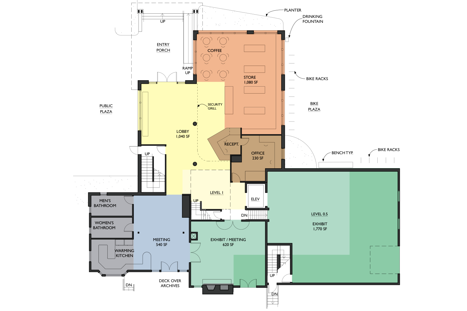 This project offers a unique opportunity to re-use and expand a successful community asset. Much of the existing building—including exhibit spaces, the elevator, and central stair—will be preserved, while new spaces are added in phases as funds are raised through community outreach. The first phase includes an archives addition, expanded meeting space, and an outdoor deck. Building on the structure’s solid foundation and craftsmanship, the project balances preservation with forward-looking design to create a lasting civic landmark.