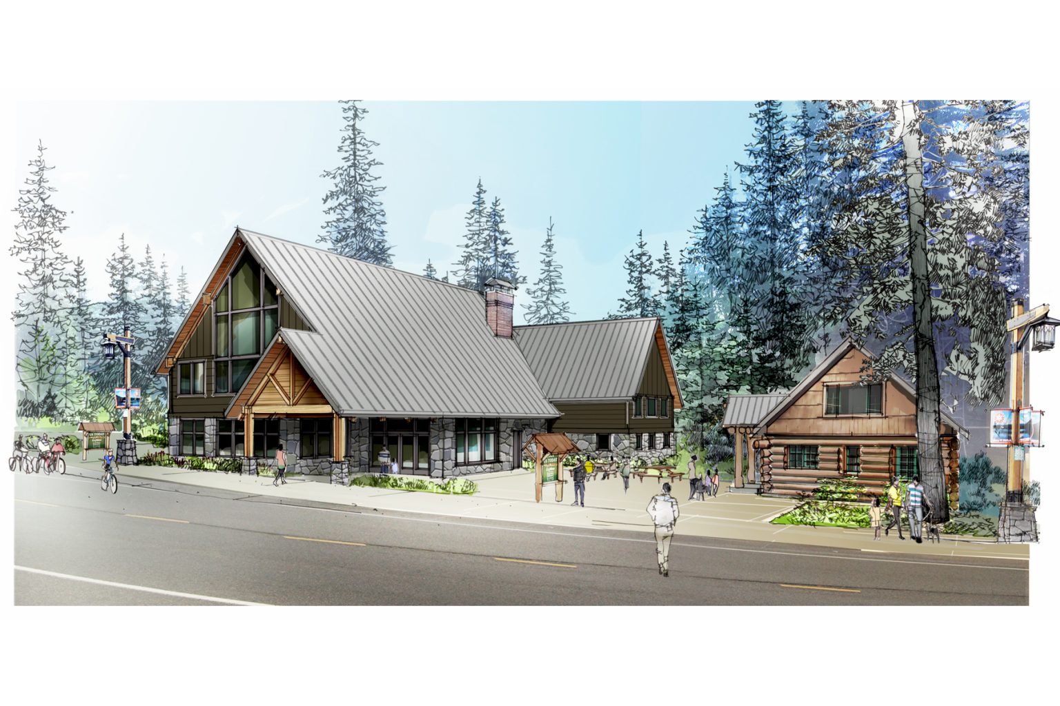 The new design responds to the mountain environment with durable, simple roof planes that shed snow efficiently, wide porches for shelter, and a form inspired by local alpine vernacular. The building’s base will be clad in local basalt, with large timbers supporting upper levels and expansive windows framing Mt. Hood.