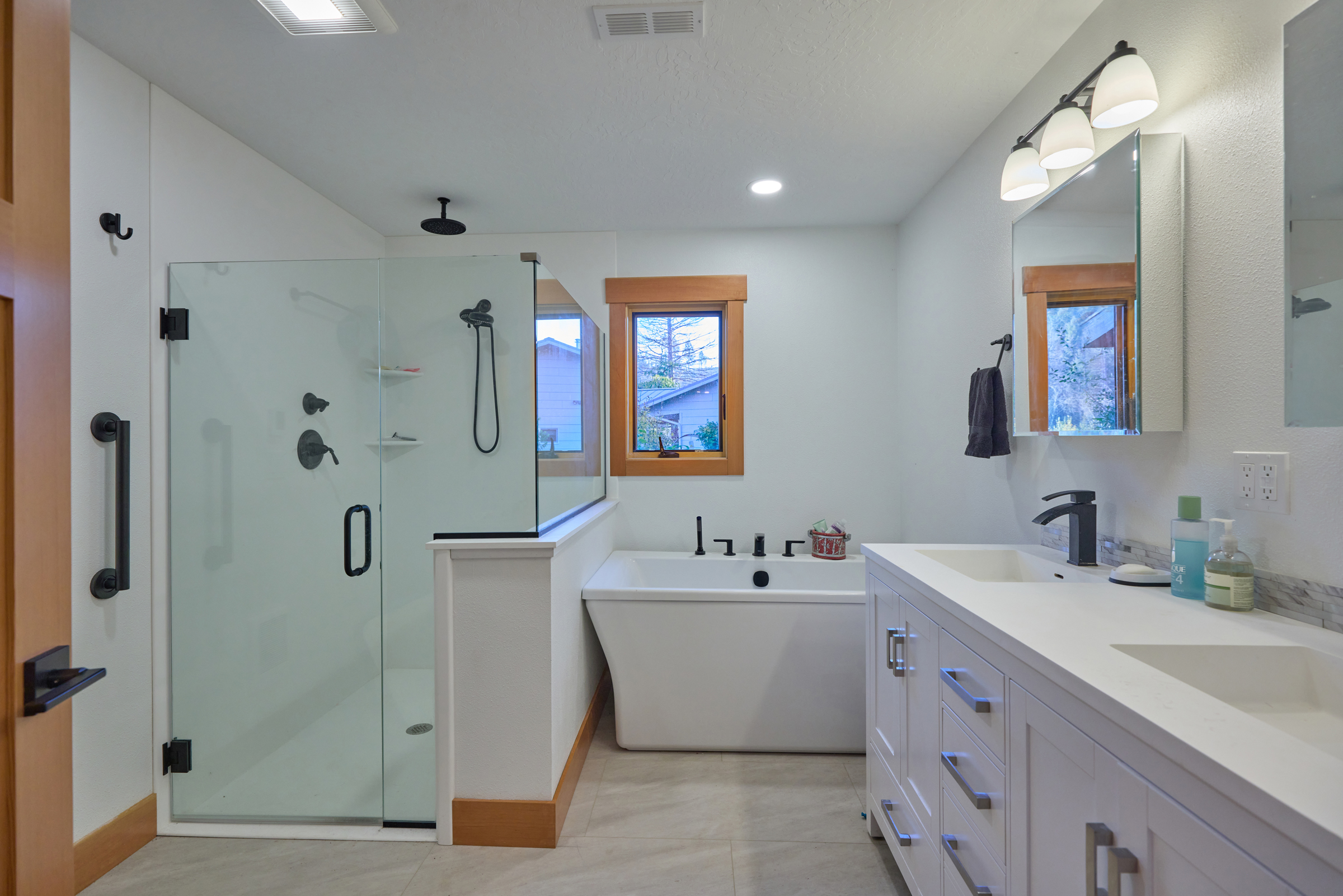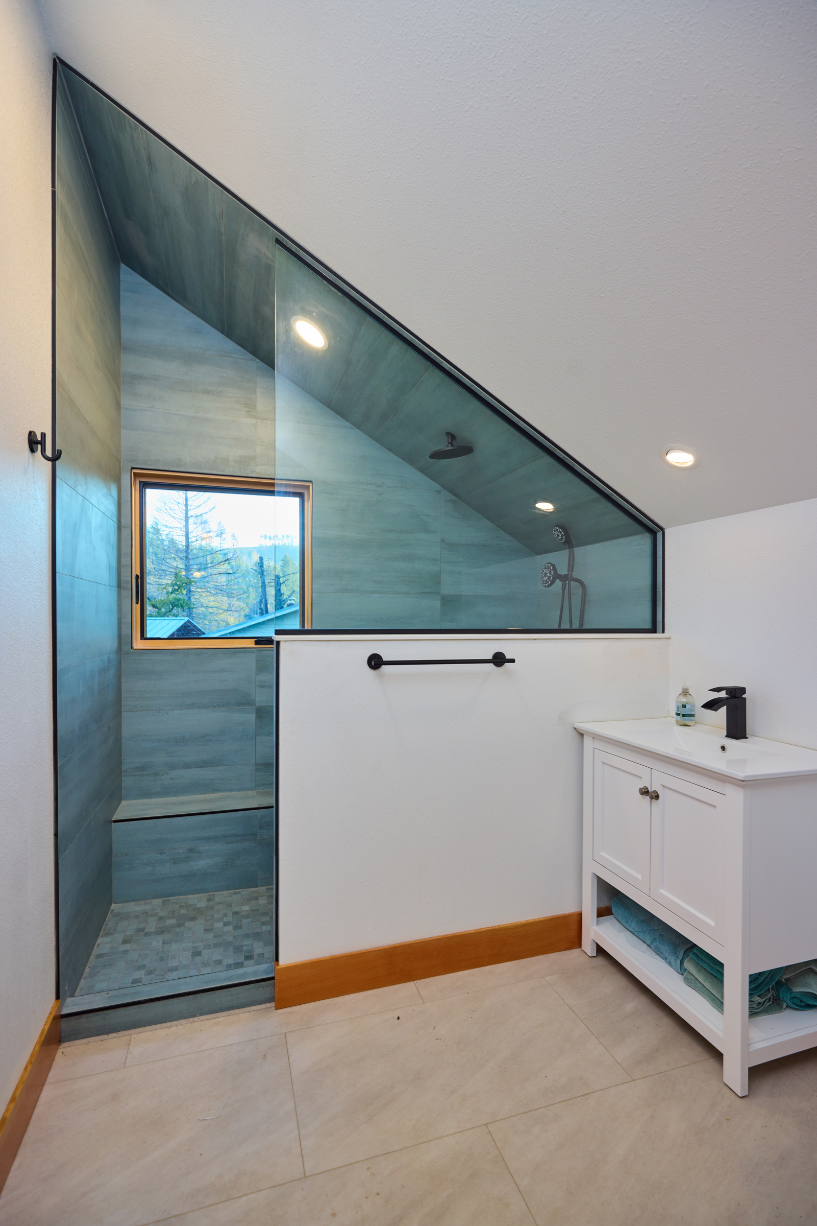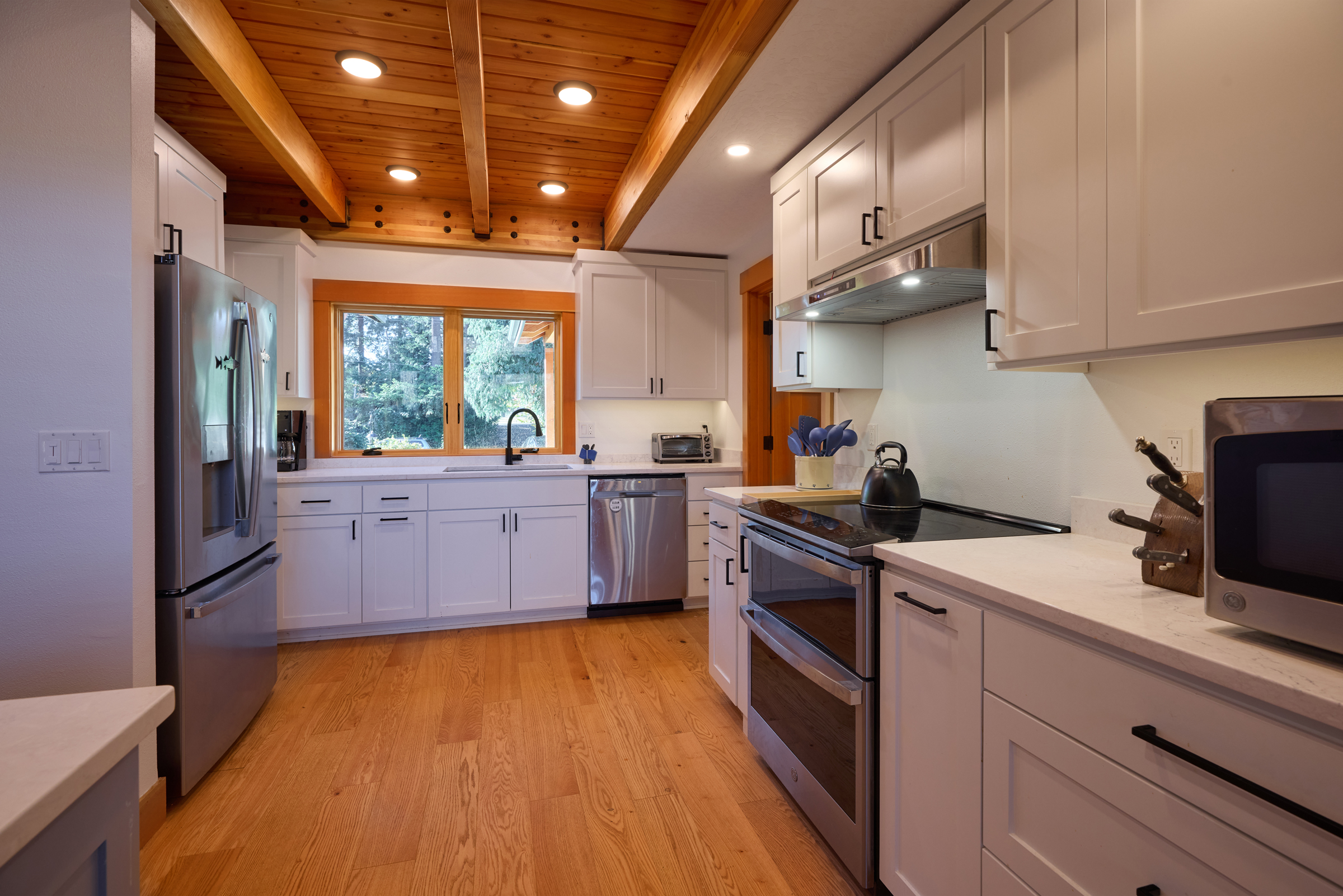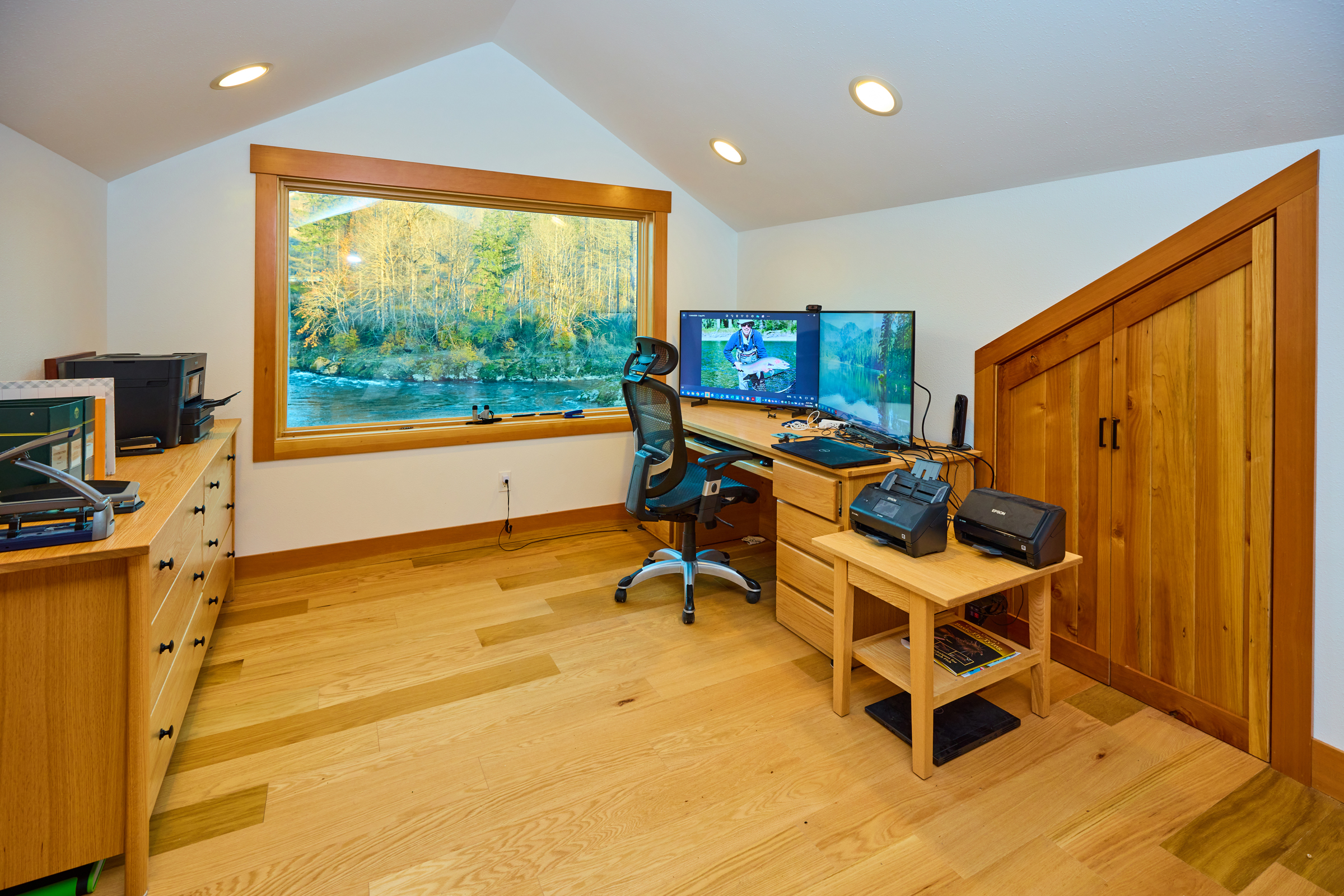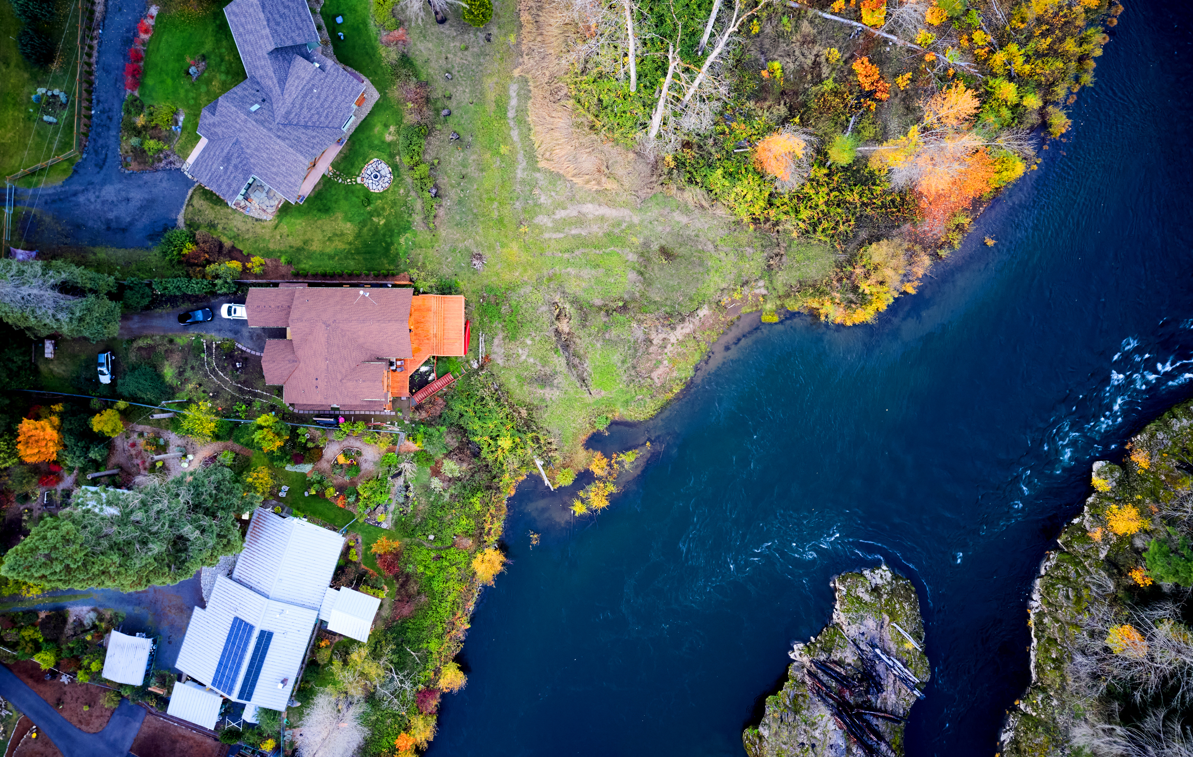 This residence along the McKenzie River rests along a tree dappled bend. The owners sought to replace and improve upon the previous cabin which had been destroyed in the 2020 Holiday Farm Fire. Aligned Architecture’s design embraces the river views, drawing upon traditional timber building techniques to create an ode to air, water and light.