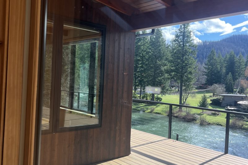 This design features a main residence, guesthouse, and and carport. Expansive windows and porches open up to the scenic Mckenzie River. Timber trusses at the entry, walkways, and carports unify the design and call back to traditional timber building traditions.