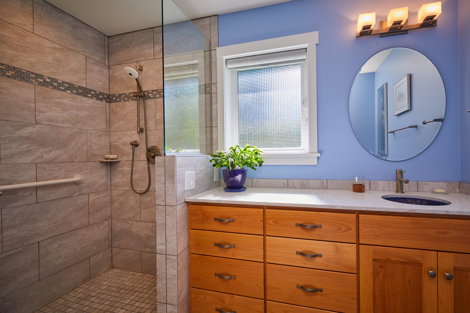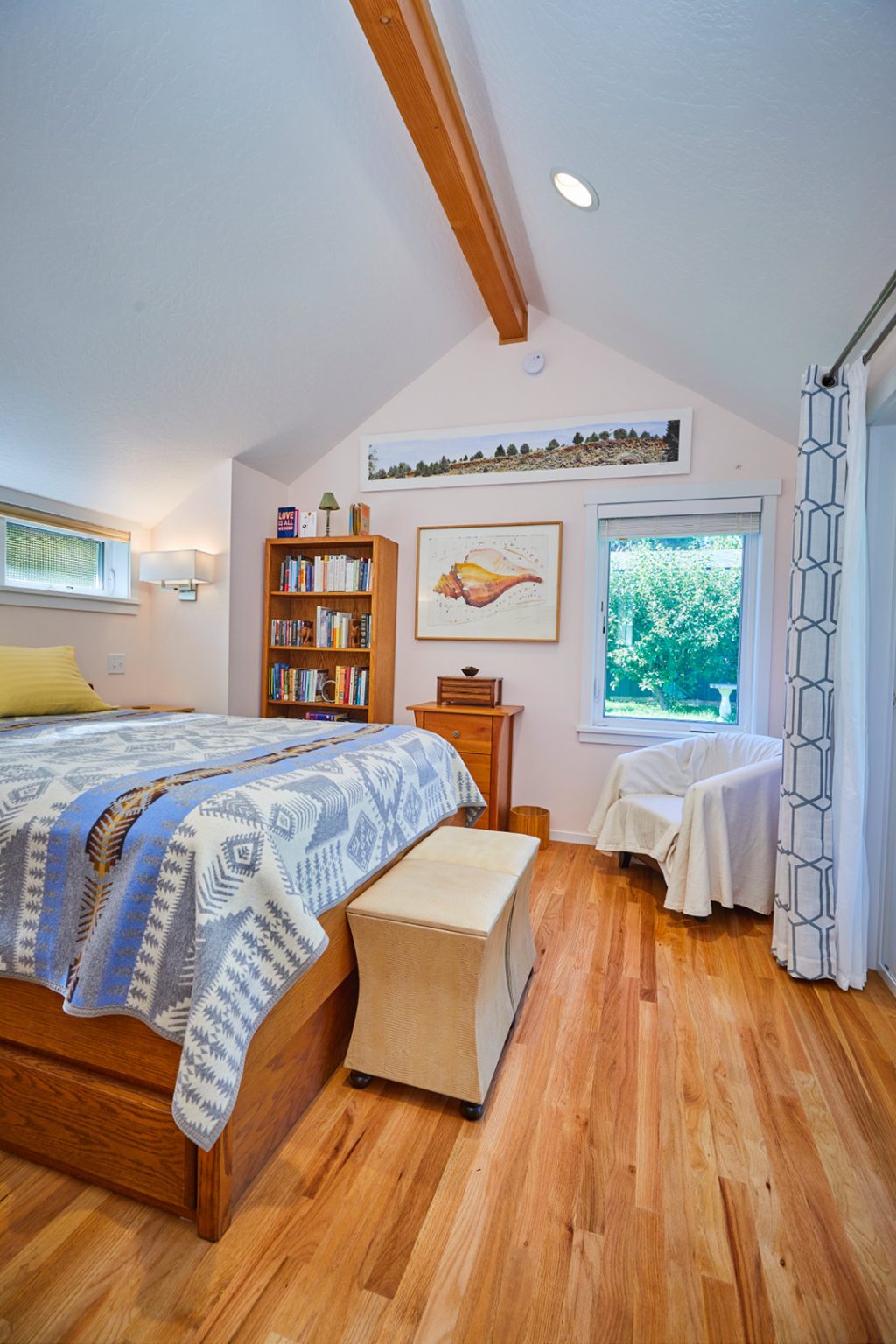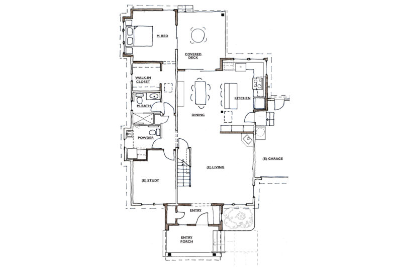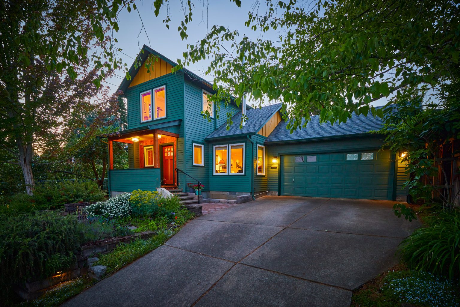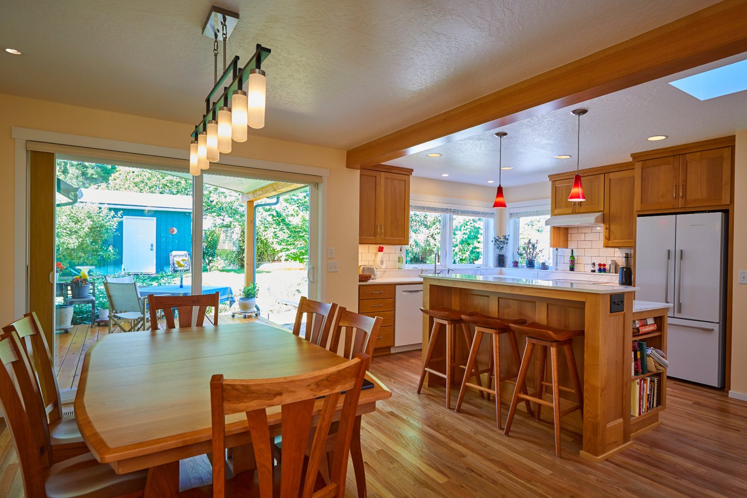 Our design included a kitchen and master bedroom addition along with a remodel of the second floor and entry. We brightened up the facade with colorful siding and a timber clad entry to modernize this Eugene home. Fine timber details are included in the kitchen and master bedroom.