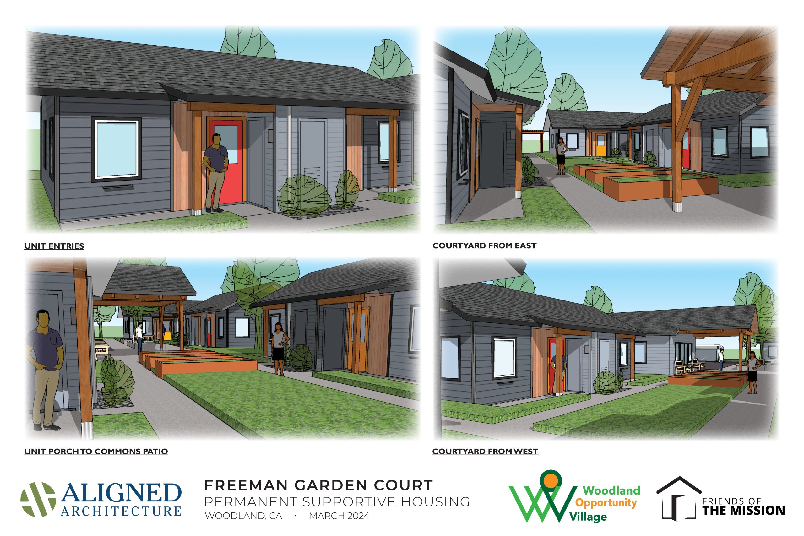 Aligned Architecture continually seeks out opportunities to design affordable housing. Woodland Opportunity Village, a garden court at 334 Freeman Street in Woodland, California, is a great example.