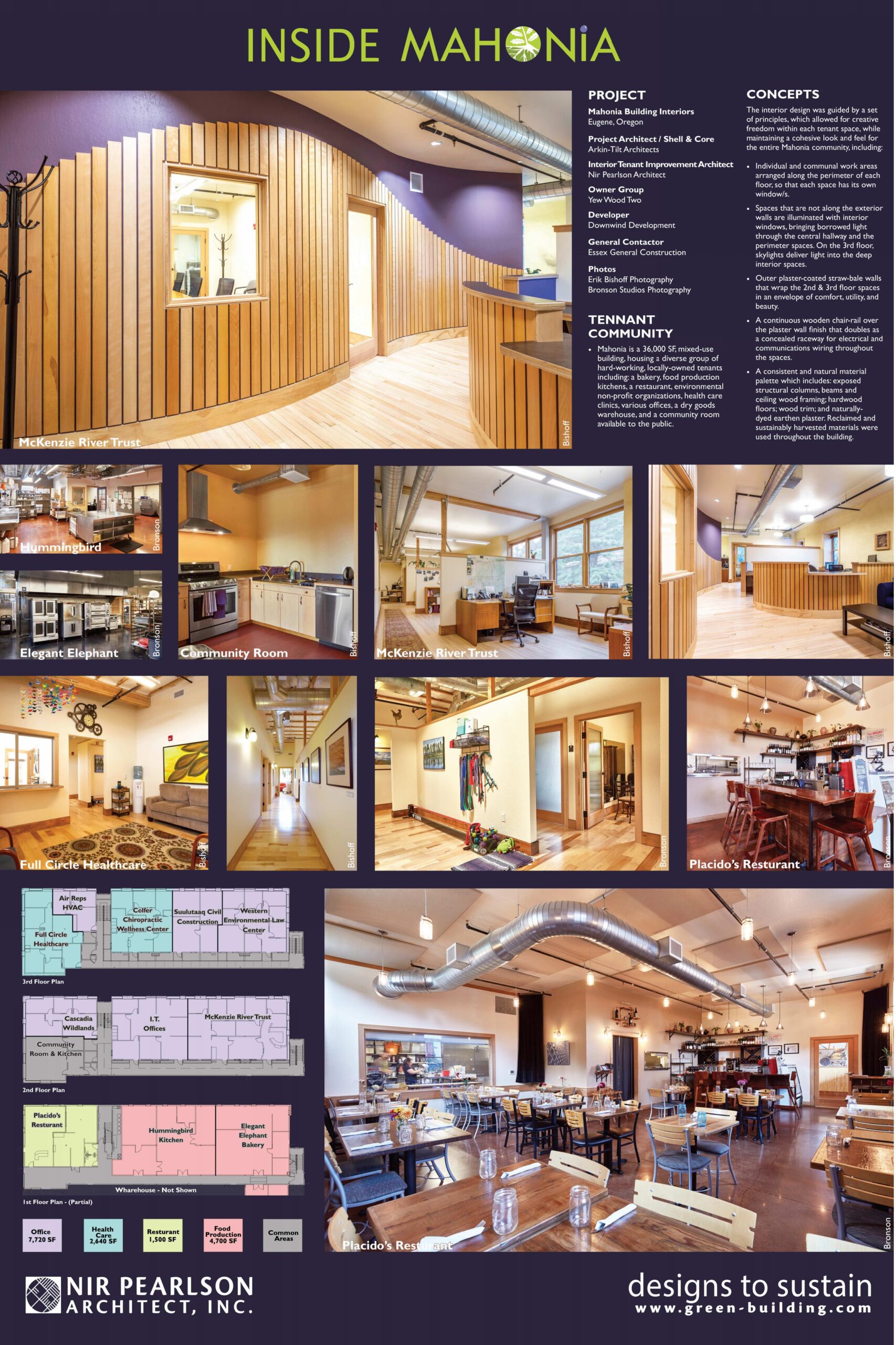 Mahonia is a 36,000 SF, mixed-use building, housing a diverse group of hard-working, locally-owned tenants including: a bakery, food production kitchens, a restaurant, environmental non-profit organizations, health care clinics, various offices, a dry goods warehouse, and a community room available to the public.