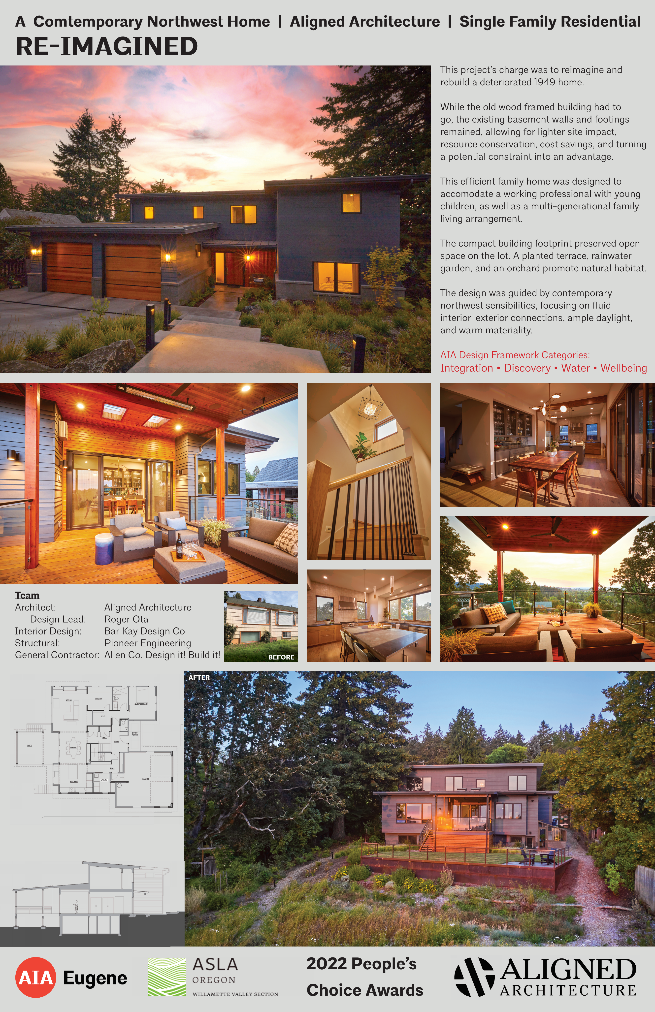 This annual competition is organized by the American Institute of Architects Eugene Chapter during the month of September, where local architects and landscape architects present their featured projects in various categories, and the citizens of Eugene cast their vote for the best project in each category.