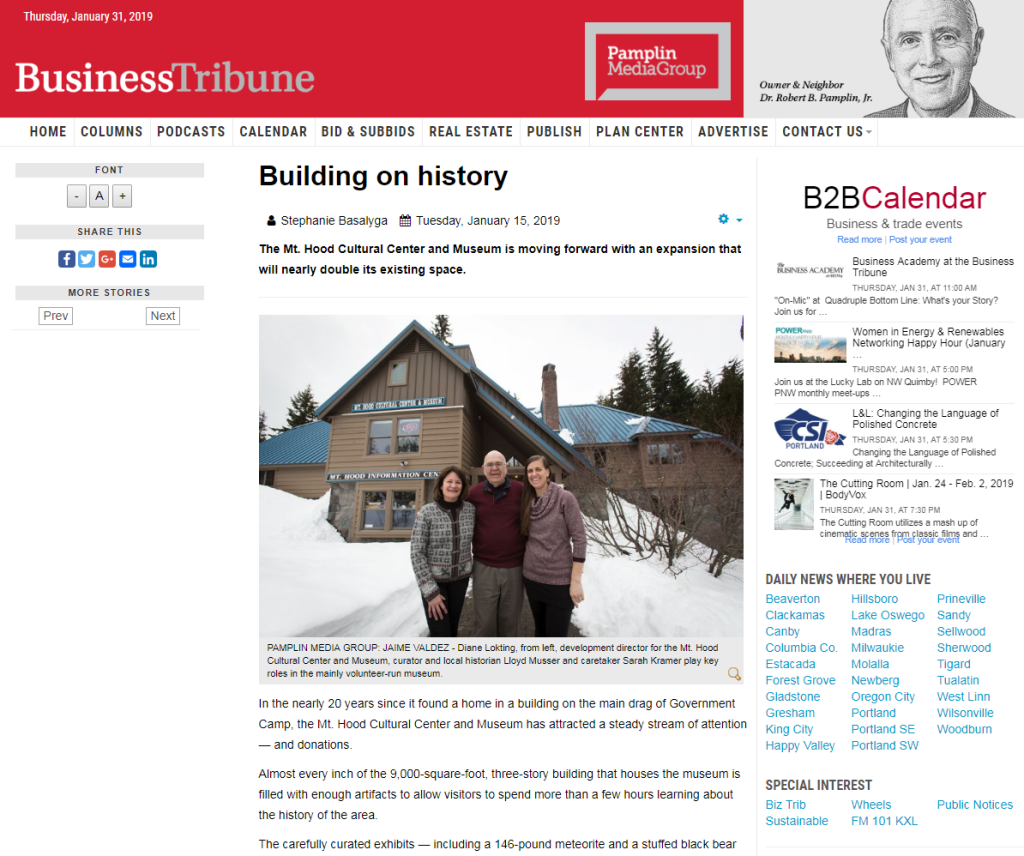 In the nearly 20 years since it found a home in a building on the main drag of Government Camp, the Mt. Hood Cultural Center and Museum has attracted a steady stream of attention — and donations.